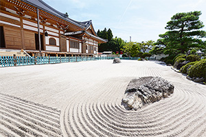 「愚溪寺」は山号を「大智山」といい、臨済宗妙心寺派の名刹で、約17,000平方メートルの広大な境内敷地と美しい枯山水の庭「臥竜石庭(がりょうせきてい)」を有しています。